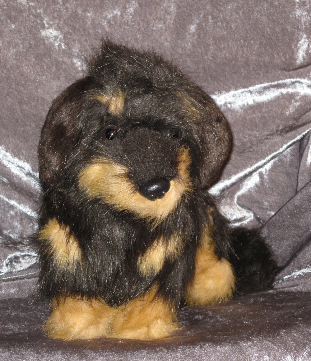 Lækker plyshund i tysk kvalitet. Håndarbejde i blød, højkvalitets plys. Sikkerhedsøjne, indeholder ingen skadestoffer, og tåler masser af kys og kram. Selvfølgelig kan den maskinvaskes ved lav temperatur (max 30 grader). CE-mærket.
