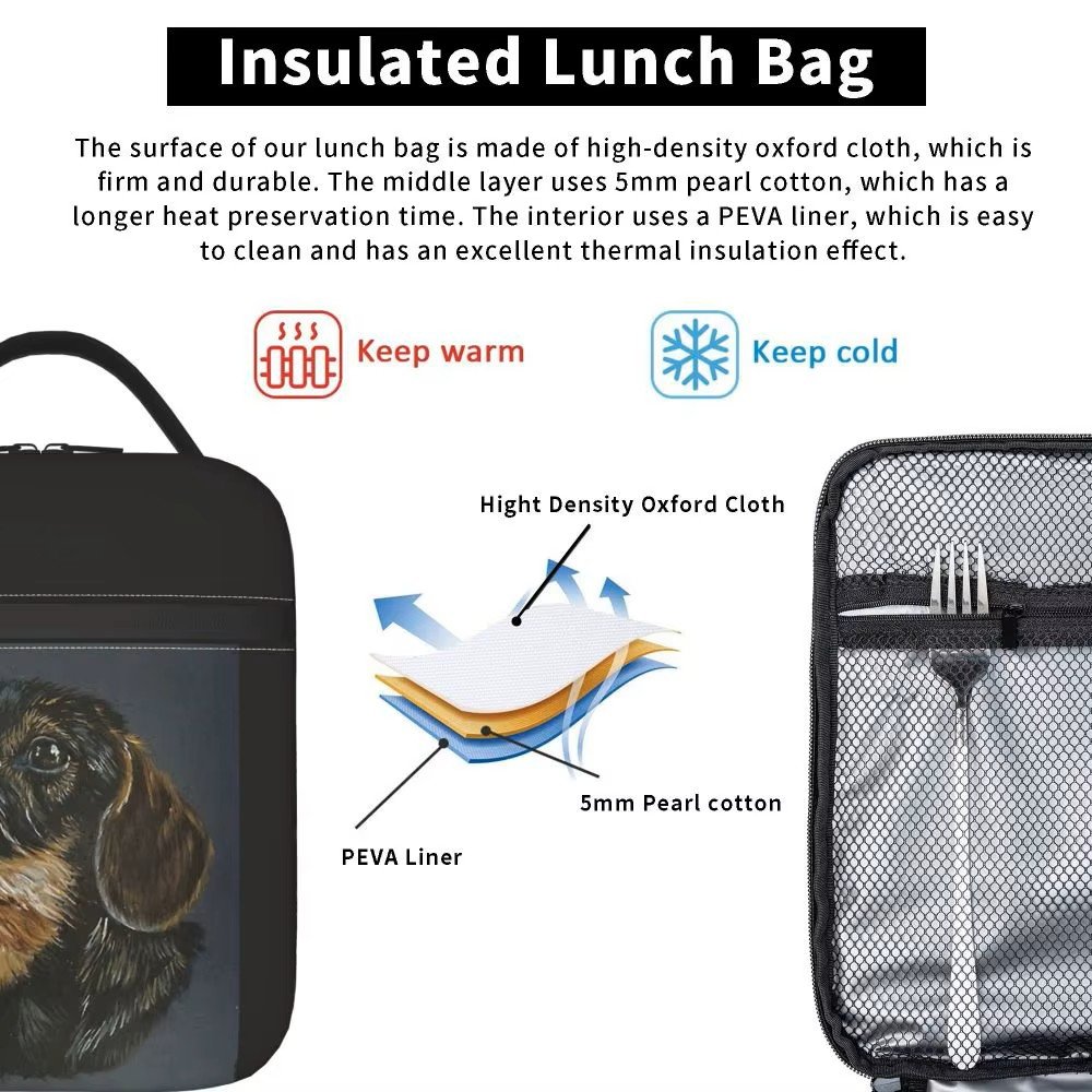 Lavet af såkaldt "oxford-stof", som har en let tekstur, blød tekstur, god vandtæthed og god holdbarhed. Den kraftige folie holder indholdet varmt/koldt op til 4 timer.